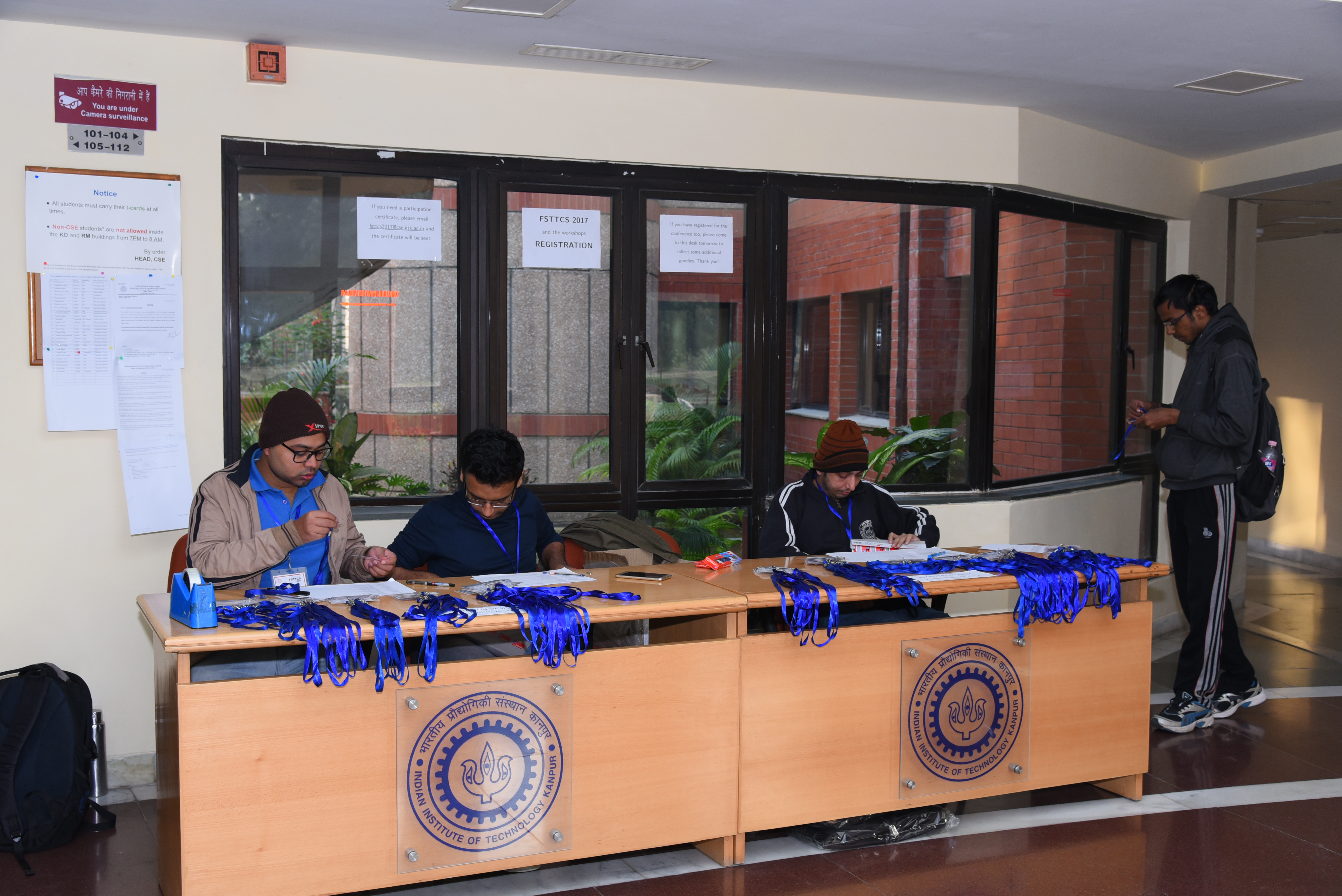 Note: Once you complete the registration for the conference and/or the workshop(s), you will receive an email on your registered email address in few days from fsttcs2017.acco@cse.iitk.ac.in. Kindly follow the instructions and fill your travel and accommodation details (we have started sending travel and accommodation registration emails since Friday, 27 October 2017). If you have not received any email or in case of any travel/accommodation related queries kindly send a mail to fsttcs2017.acco@cse.iitk.ac.in.